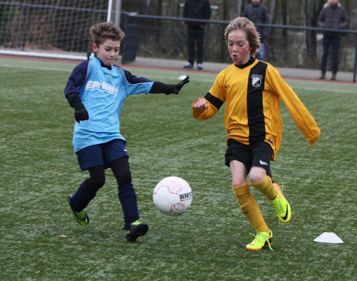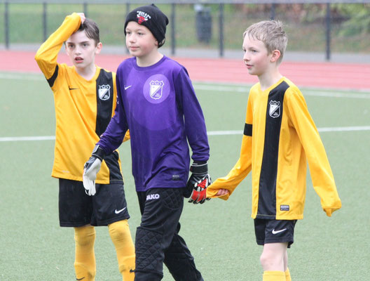 Mit einer Notmannschaft waren unsere E1-Junioren am Samstag nach Holland gefahren, um am Turnier des VV de Heeg in Maastricht teilzunehmen. Zahlreiche Stammspieler mussten passen, so dass die Mannschaft ohne Ersatzspieler angereist war. So war es nicht verwunderlich, dass unsere Jungs lediglich einmal Remis spielten, alle anderen Partien aber verloren, so dass das Team nach der Vorrunde bereits ausgeschieden war. Die Laune bei unseren Jungs war trotzdem bestens. Denn sie hatten es einfach genossen, erstmals bei einem internationalen Turnier dabei gewesen zu sein. Zudem sicherte sich Georgios noch den zweiten Platz im Neunmeterschießen. - Es spielten: Erion, Sias, Georgios, Haris, Tom, Bleon und Mark. - (p.d.).