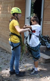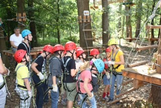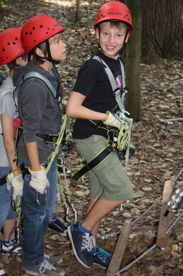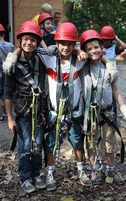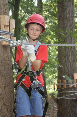 Nach einem kurzen Zwischenstopp bei McDonalds wurde dann die Unterkunft bezogen, ehe es zum Kletterpark weiterging. Dort trieben unsere Jungs dann drei Stunden lang ihr Unwesen, kletterten, balancierten und hatten eine Menge Spaß. Als Belohnung gab es danach eine Runde Pizza für alle, ehe noch einmal der Ball ausgepackt und eine Runde gekickt wurde.
