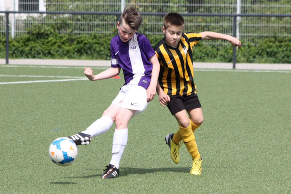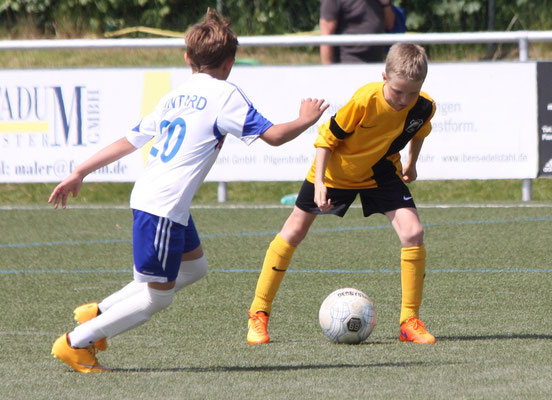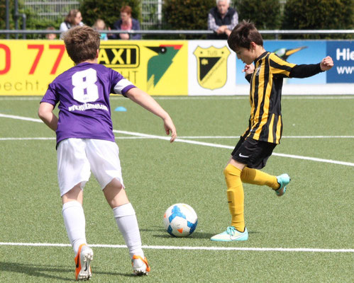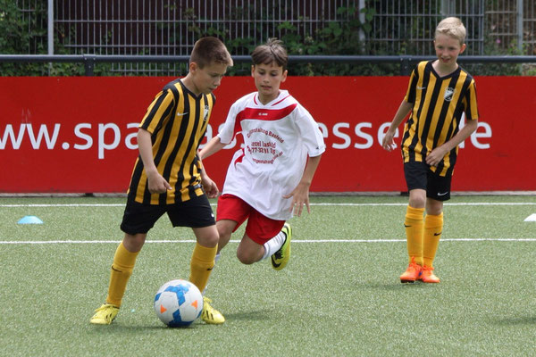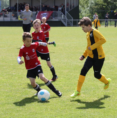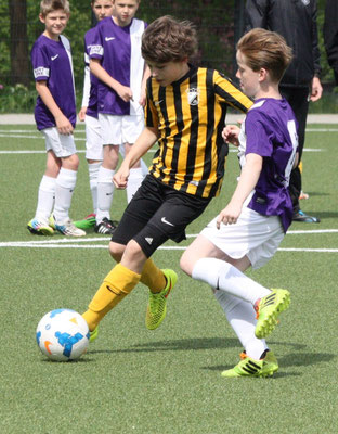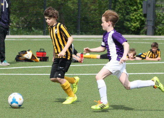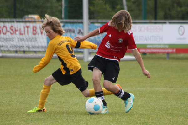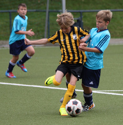 Nach dem Wechsel schien die Begegnung zu kippen, denn nach dem 3:3 gelang Altenessen sogar das 4:3. Doch unsere Jungs gaben sich keineswegs geschlagen, ließen den Ball immer wieder schön laufen und kamen durch ihre feinen Spielzüge und Doppelpässe zu guten Chancen. Diese nutzten Rico zum 4:4, Paul per Weitschuss zum 5:4 und Lars nach einer Ecke von Camillo gar zum 6:4. Als Altenessen auf 6:5 herankam, behielten die TuS-Jungs die Ruhe, schafften durch einen Kopfball von Rico das 7:5. Und auch auf den erneuten Anschlusstreffer zum 7:6 hatten unsere Jungs die passende Antwort parat, als Camillo per platziertem Flachschuss den 8:6-Endstand besorgte.