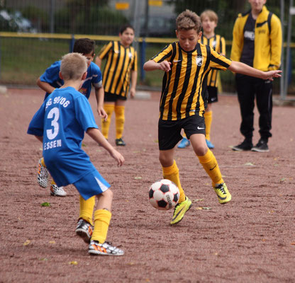 So hatten sich unsere E1-Junioren den Start in die neue Saison nicht vorgestellt. Deutlich mit 2:7 (1:4) waren sie beim VfB Frohnhausen unterlegen, obwohl der Gegner alles andere als übermächtig war. Doch während die Spieler des Gastgebers die einfachen Dinge des Fußballs machten, ihre Positionen hielten, den Ball laufen ließen, kaum Fehler machten, fein kombinierten und einfach ganz unaufgeregt kickten, herrschte bei unserem Team ein heilloses Durcheinander. Der Auftritt erinnerte eher an ein Bambini-Spiel: kein Spielfluss, keine gewonnenen Zweikämpfe, keine Ballstafetten über zwei oder drei Stationen, keine Laufbereitschaft, dafür umso mehr Meckereien - es lief einfach nichts zusammen. Und so durften sich unsere Jungs nicht beklagen, dass sie am Ende so hoch unterlegen waren. -