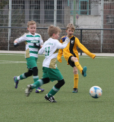 Beeindruckt von der Vorstellung unserer Jungs war auch der Gästetrainer, der nach der Partie verriet, dass er nur zwei Spieler aus der E1 mitgebracht hätte, weil er dachte, dass dies gegen unser Team reichen würde. Dann aber gestand er ehrlich ein, dass sich unsere E1 richtig gut entwickelt habe. Denn unsere Jungs hatten immer wieder das Spiel von hinten stark aufgebaut, im Mittelfeld fein kombiniert und vorne konsequent den Abschluss gesucht.