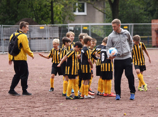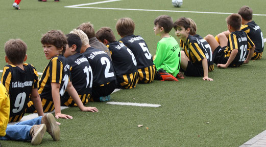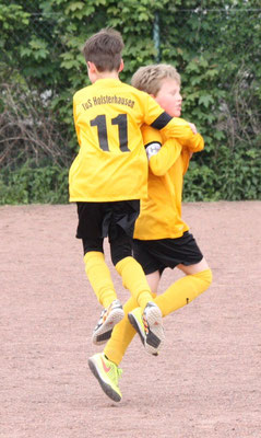 Entsprechend groß war nach dem Abpfiff zuerst der Frust bei unseren Jungs. Doch spätestens als sie aus der Kabine kamen, hatte sich auch ein bisschen Stolz unter den Ärger gemischt. Denn keine andere Mannschaft hatte es den Frintropern in dieser Saison bislang so schwer gemacht wie die aus Holsterhausen. Das zeigt, dass die E1-Junioren auf einem guten Weg sind und dass der Verein noch viel Freude an dieser Mannschaft haben wird - wenn die Jungs weiter so konzentriert im Training mitmachen und das Gelernte im Spiel umsetzen.