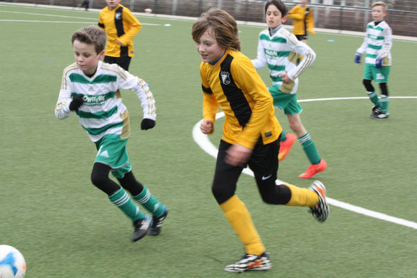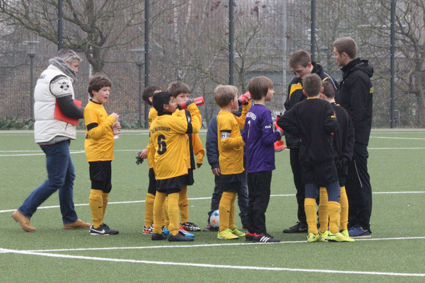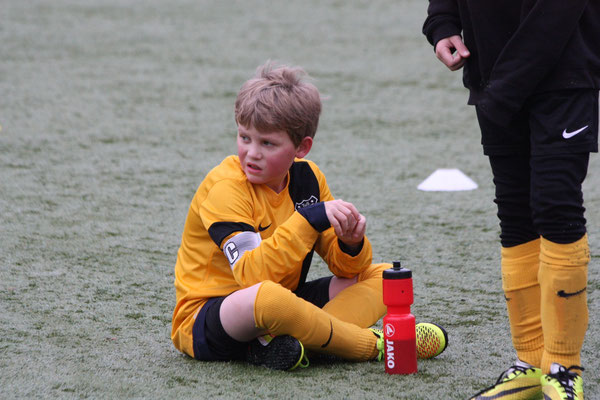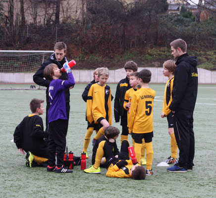 Wieder einmal hatten die Schützlinge der beiden Trainer Hendrik und Lukas einen schwachen Start in die Partie erwischt. Denn schnell lagen sie mit 0:2 zurück. Zwar verkürzte Paul auf 1:2, doch die Borbecker ließen erneut zwei schnelle Treffer folgen, die bei den TuS-Jungs Wirkung zeigten. Die Mannschaft war völlig verunsichert, nichts war mehr zu sehen von der Ordnung und der Spielfreude, die die Mannschaft in der Herbstrunde ausgezeichnet hatte. So hatten die Gastgeber leichtes Spiel, auf 7:1 zu erhöhen, ehe Lars und Bleon mit ihren beiden Toren für den 7:3-Endstand sorgten.