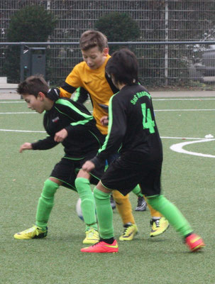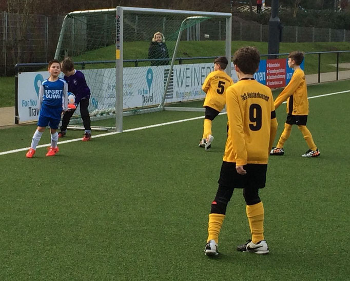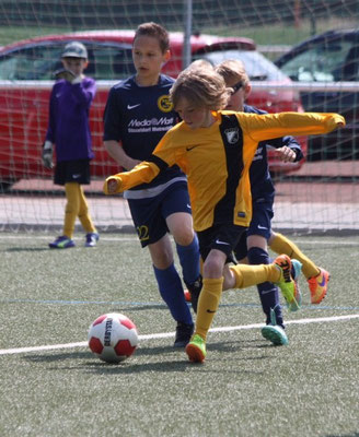 1:3 verloren hatte. Gegen TuSEM, das nach der kurzfristigen Absage vom VfL Leverkusen mit zwei Mannschaften in unserer Gruppe spielte, gab es zuerst ein 1:1. Paul hatte zum 1:0 getroffen, dann markierte TuSEM in letzter Sekunde das 1:1. Danach waren bei unseren Jungs, die nur einen Auswechselspieler zur Verfügung hatten, die Luft raus. Gegen die zweite Mannschaft von TuSEM gab es ein 1:2 (Torschütze Paul), gegen den Vogelheimer SV ein 1:4.
