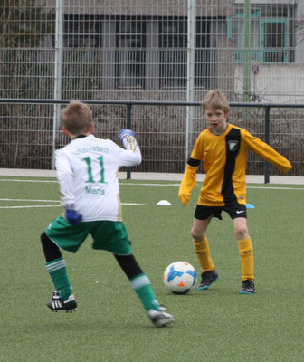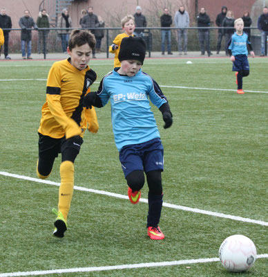 Auch nach dem Wechsel spielten sie weiter konzentriert, ließen in der Defensive nichts mehr anbrennen, und im Spiel nach vorne kurbelte Tom alle Aktion an, setzte seine Mitspieler immer wieder gekonnt in Szene, so dass die logische Folge sechs weitere Treffer zum 12:1-Endstand waren. Alle Akteure erhielten ungefähr gleich viele Spielanteile, und auch die Jungs, die sonst meistens weniger zum Einsatz kommen, fügten sich nahtlos in das Kombinationsspiel ein und setzten genauso wie die etablierten Kräfte genau das um, was im Training geübt worden war - nämlich den Ball und den Gegner laufen zu lassen, immer wieder zu kombinieren und den besser postierten Mitspieler zu suchen.