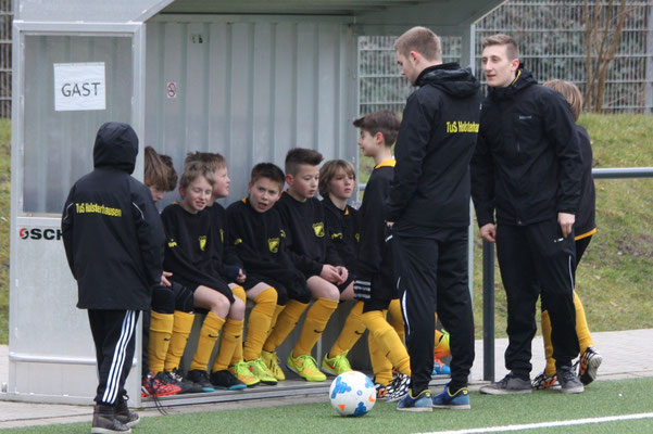 Schnell lag der TuS mit 0:4 zurück. Als dann Bleon auf 1:4 verkürzte und Mark den Außenpfosten traf, keimte noch einmal Hoffnung auf. Und auch zur Pause machten die Trainer den Jungs klar, dass das Spiel noch keineswegs verloren sei. Dafür müssen sich aber einige Spieler ein wenig mehr einbringen, mehr Bereitschaft zeigen. - Die Worte schienen Gehör gefunden zu haben, denn Mark verkürzte nach einer Kombination mit Lars auf 2:4 - und noch waren über 20 Minuten zu spielen. Doch anschließend waren kein Aufbäumen und auch nicht die nötige Gegenwehr zu erkennen. So hatte Frohnhausen am Ende leichtes Spiel, noch drei weitere Treffer zum 7:2-Endstand zu erzielen.