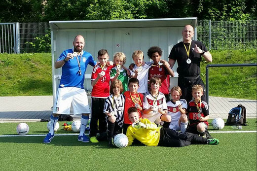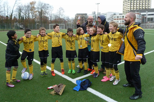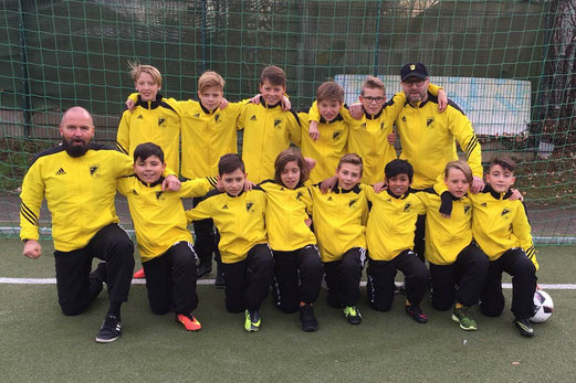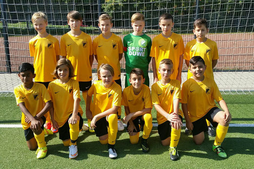 Maximilian, Levin, Bedirhan, Bleron, Tullio Issa, Adrian, Emir, Teo, Liam, Robin, Sagheen und Lenny sowie als Neuzugänge Nils (SC Phönix) und Bilal (TuS Essen-West 81). - Trainerteam: Michele, Ralf, Markus und Jan bzw. Patrick.